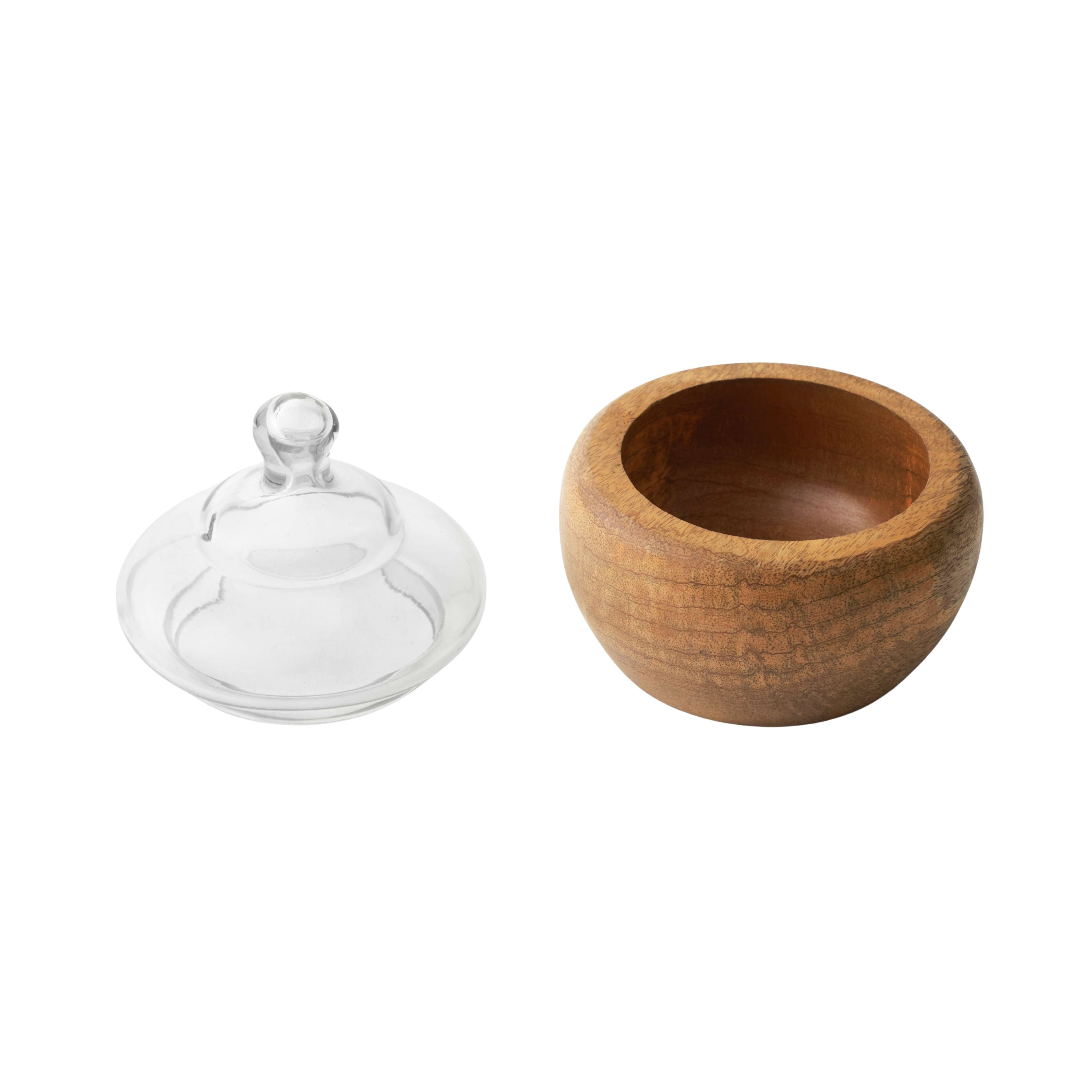 | The Dahlia Bowl is a beautifully crafted décor piece featuring a natural wooden base paired with a smooth, clear glass top. Its design showcases an elegant contrast between the warmth of the wood grain and the refined transparency of the glass, creating a visually striking centerpiece. The round silhouette and polished finish give it a modern yet organic appeal, making it an eye-catching addition to any space. With its harmonious blend of textures and tones, the bowl exudes a sense of simplicity and sophistication. The Dahlia Bowl enhances interiors with its natural beauty and timeless design. 5X5X6",Wood Glass,Natural |