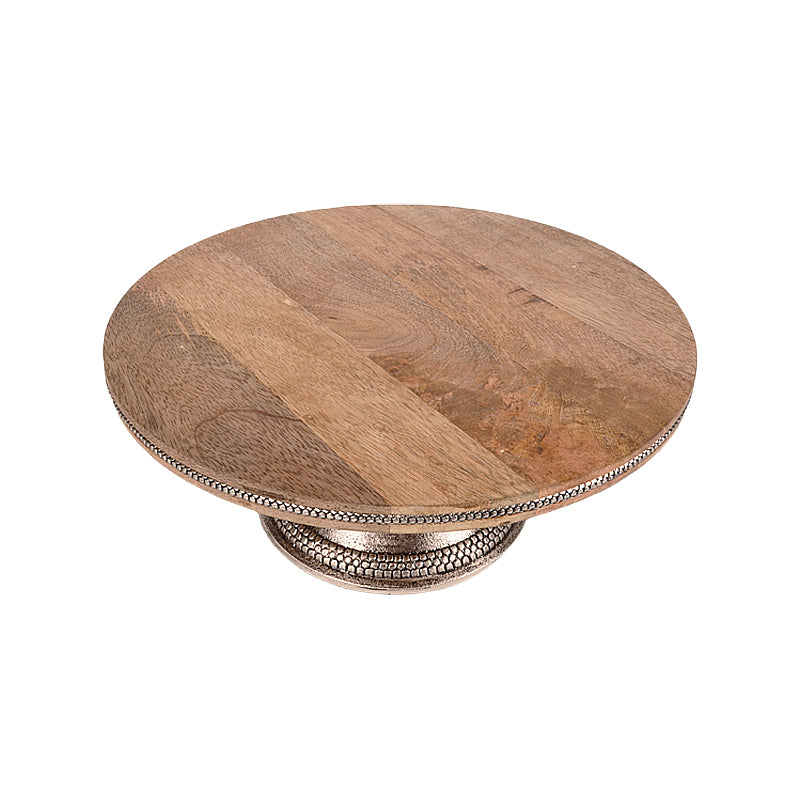 Wooden cake stand 12.2x12.2x5.11",Mango Wood Metal,Natural