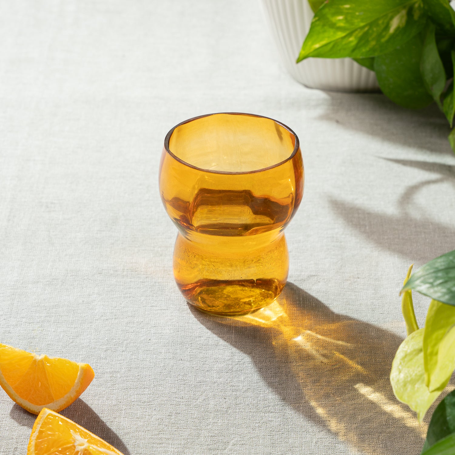 Introducing our Evara Drinking Glass, meticulously crafted from recycled glass, featuring a radiant yellow hue that adds a burst of sunshine to your table setting. Each glass is uniquely textured, highlighting the beauty of sustainable materials and reducing environmental impact. Ideal for serving a variety of beverages, its durable construction ensures long-lasting enjoyment while embracing eco-conscious living. Elevate your drinking experience with the Evara Drinking Glass, a stylish and sustainable addition to any occasion. Bring a touch of vibrant energy to your gatherings and celebrate eco-friendly living with every sip. 3.2x3.2x4.2",Recycled glass, yellow |