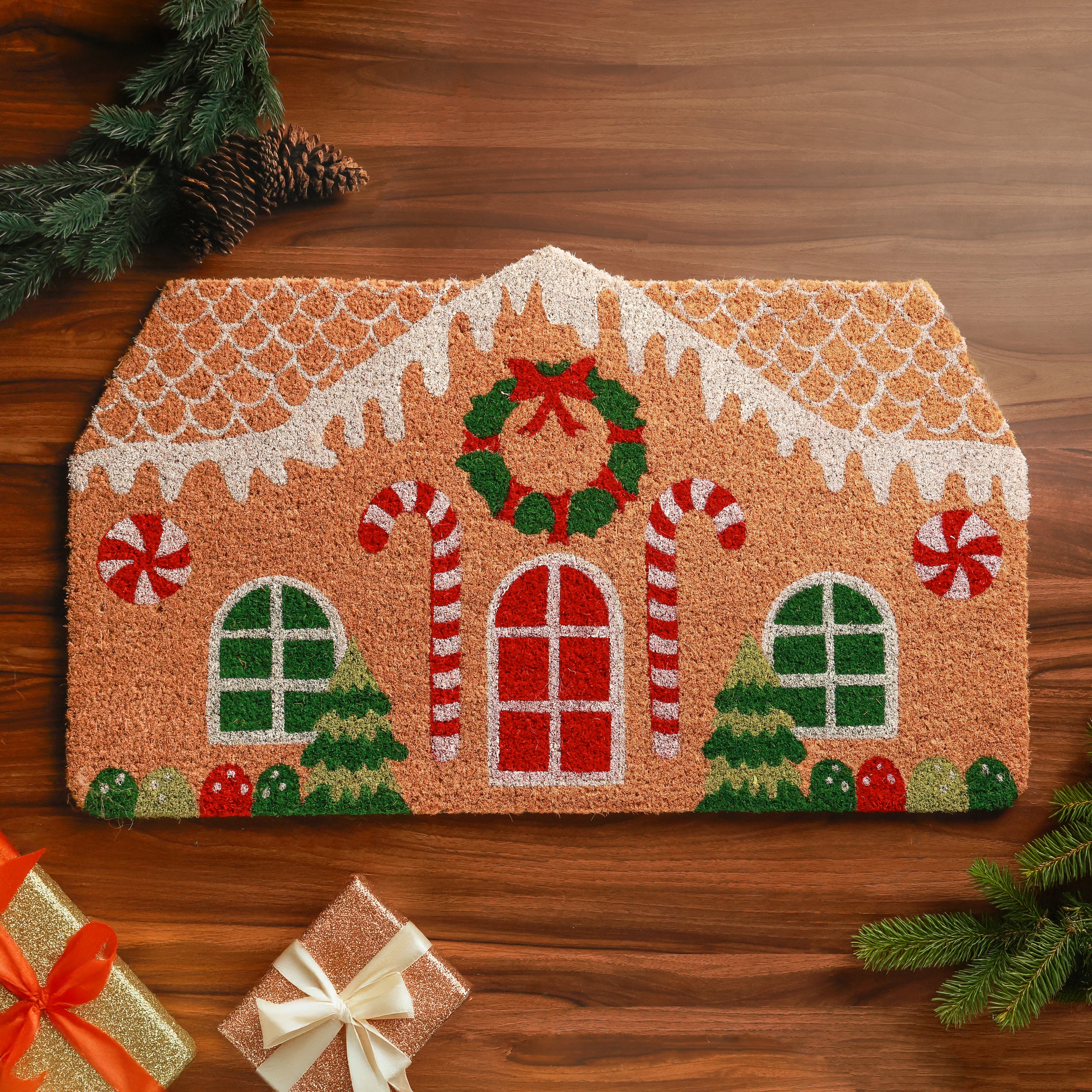 | The House Doormat, crafted from durable PVC coir in a natural colour, brings warmth and charm to any entryway. Its inviting house-themed design adds a friendly touch, making it perfect for welcoming guests. The coarse coir fibres are highly effective at scraping off dirt, dust, and moisture from shoes, helping to keep your interiors clean. Supported by a sturdy PVC backing, the mat stays firmly in place and withstands daily wear with ease. Stylish, and long-lasting, this doormat is an ideal addition to both modern and traditional homes. 12X9X11",PVC Coir,Natural |